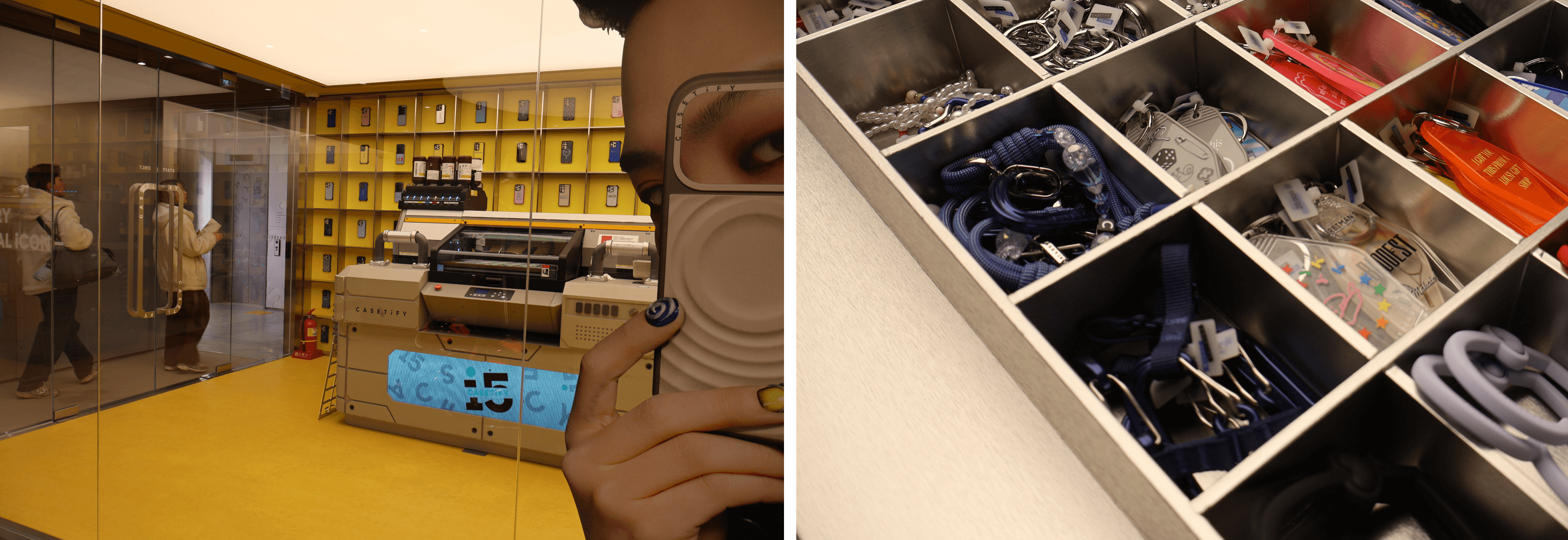 고객이 디자인을 선택하면 즉석에서 제품을 생산하는 과정을 투명하게 보여주는 CASETiFY LAB을 통해 구매 여정을 이벤트로 만든다.