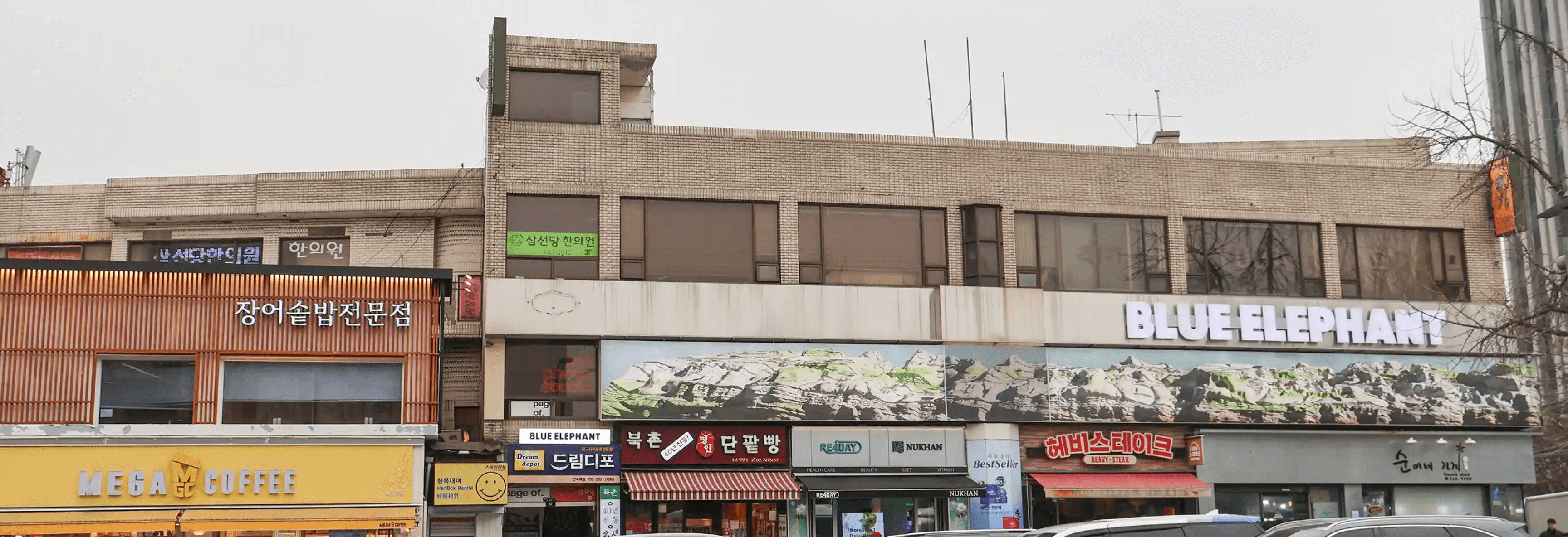 Image 3: 안국역 인근은 이제 감성 D2C(Direct-to-Consumer)보다 메이저 뷰티·헬스, 대형 IP, 통건물 기반 플래그십처럼 대형 법인의 스케일이 전제되는 업종이 들어오고 있다. 블루엘리펀트도 안국역 인근의 건물 2층에 위치하고 있다.