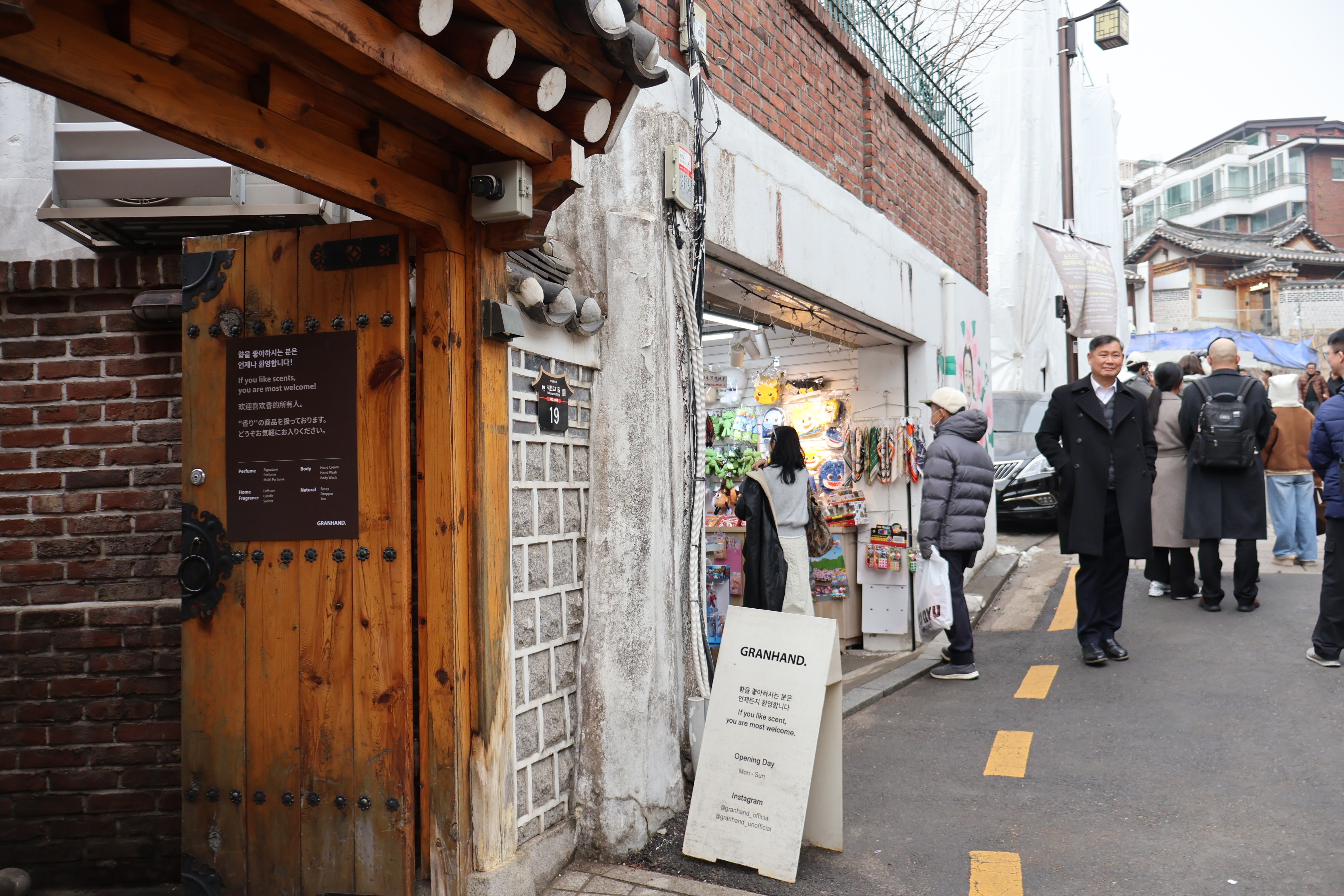 Image 2 (서쪽): 향수 브랜드 '그랑핸드(GRANHAND)'는 2014년 북촌 1호점을 시작으로 현재 가회동 내에서만 총 3개의 매장을 운영하며 지역 상권을 주도하고 있다. 그랑핸드 인근으로는 친환경 뷰티 브랜드 '아로마티카(AROMATICA)'가 신규 매장 오픈을 준비 중인 것으로 알려져 있어, 해당 구역의 K-뷰티 리테일 집적도가 더욱 높아질 전망이다.