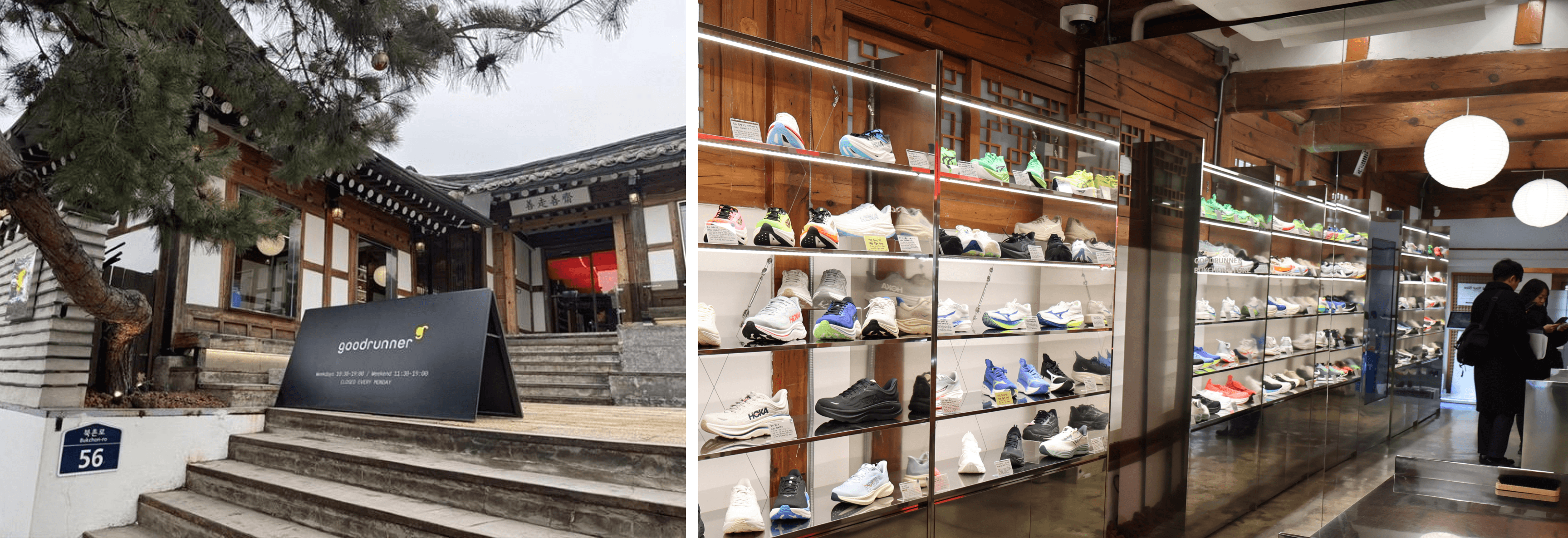 Image 3: 북촌 일대 러닝 크루 유동인구 증가에 따라 굿러너(Goodrunner)가 성수에 이어 오픈한 북촌 스토어. 한옥의 원형을 보존한 공간 구성을 통해 지역적 특색과 브랜드 정체성을 결합한 것이 특징이다.