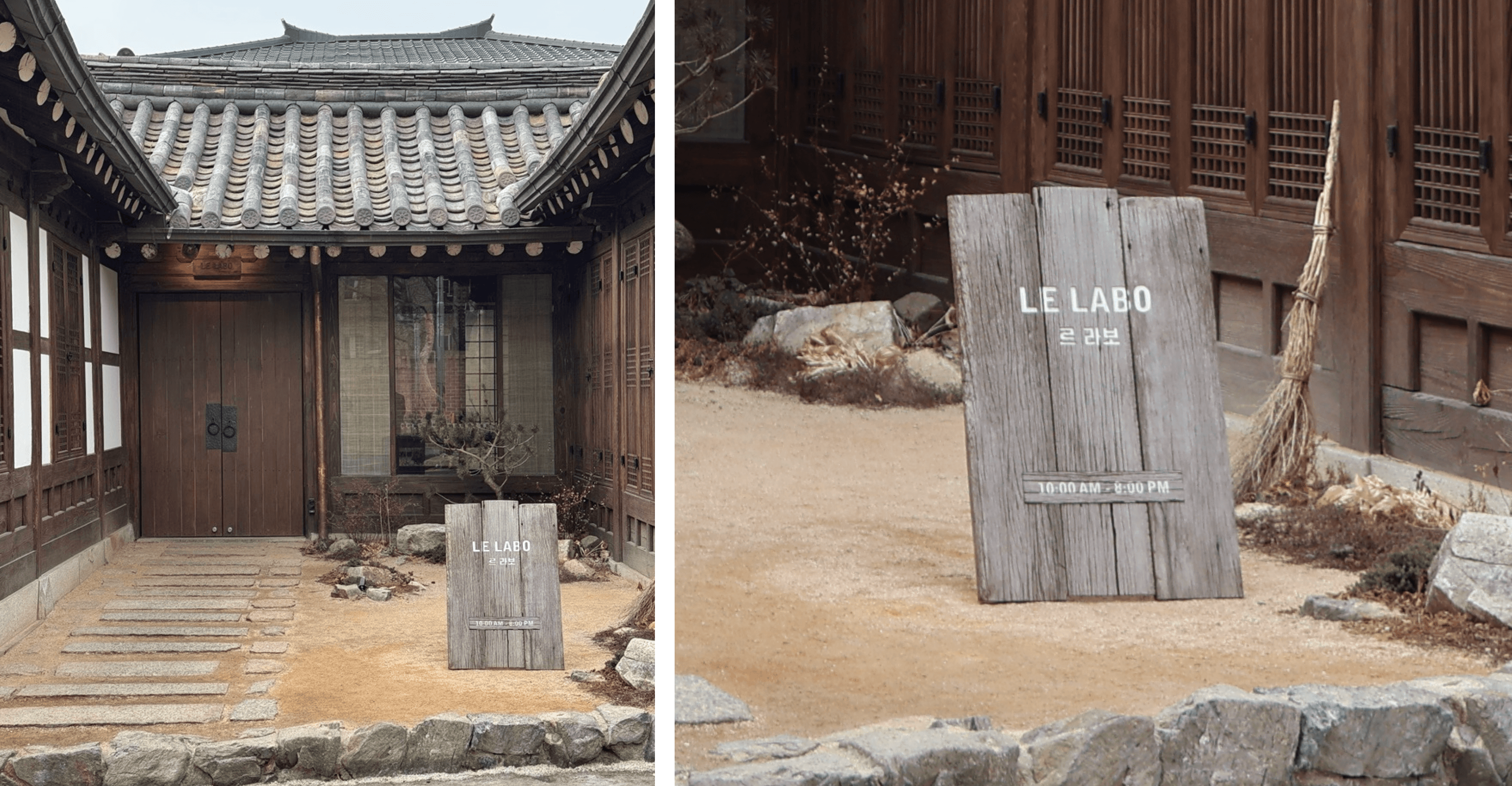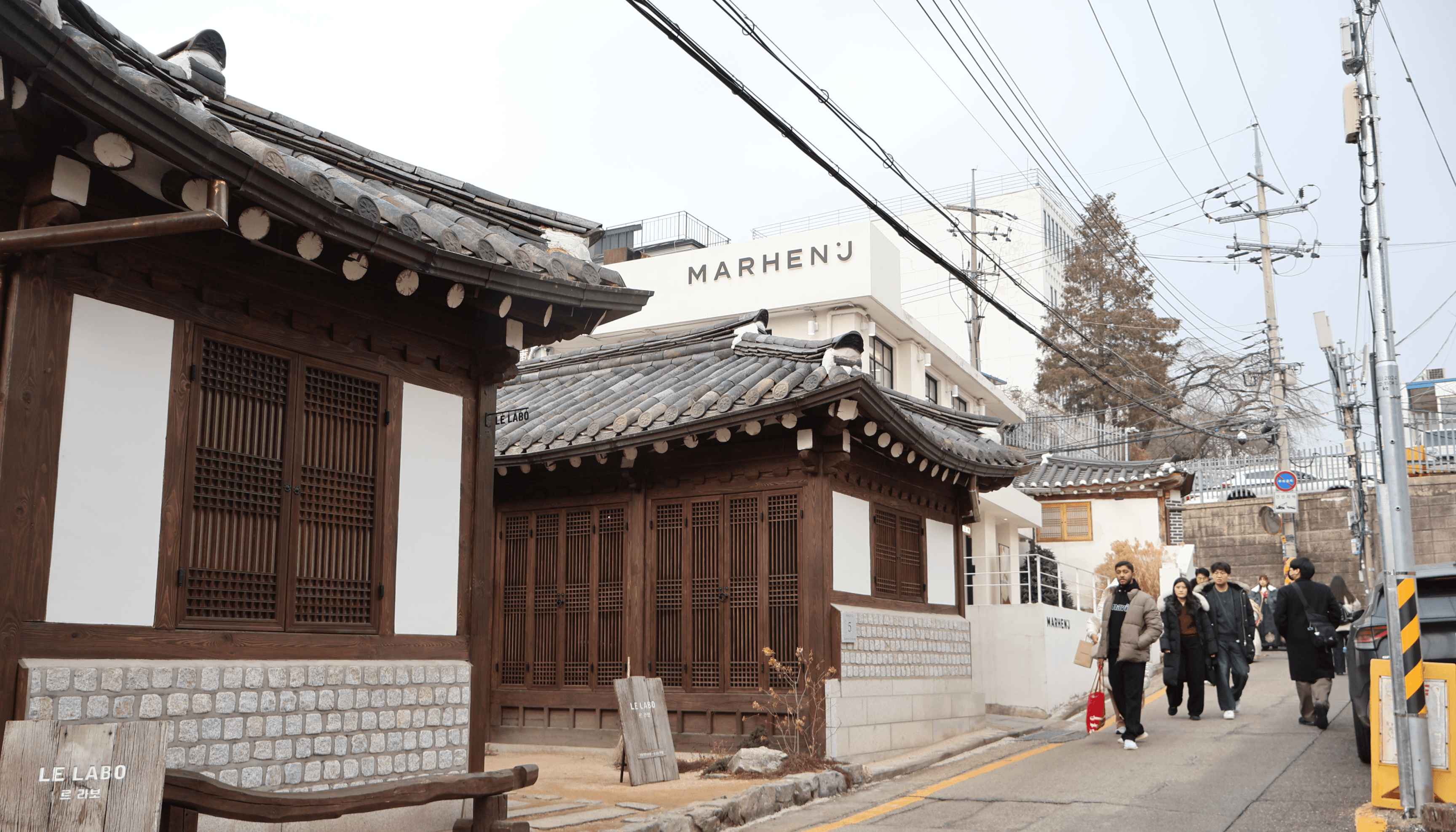 Image 2: 한옥의 미학을 극대화한 르 라보 매장은 브랜드 특유의 아날로그적 감성이 더해져 이 일대에서 가장 감도 높은 공간적 경험을 선사한다. 바로 옆 마르헨제이로 이어지는 라인은 글로벌 헤리티지와 K-브랜드의 감각이 조화롭게 섞인 화동과 소격동 일대만의 독특한 MD 구성을 드러낸다.