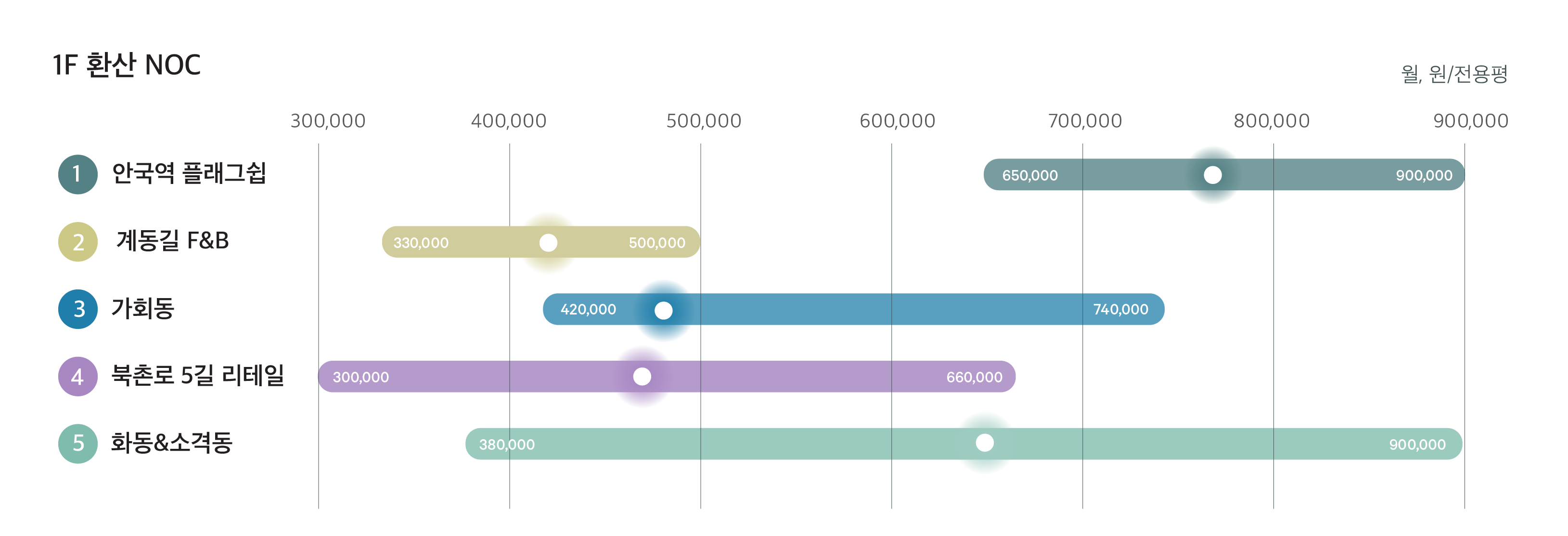 가회동: 단가와 자산화. 고단가 소비 구조를 활용한 프리미엄 포지셔닝이 핵심이며, 대형 유닛은 임대보다 매입을 통한 브랜드 자산화가 유리하다.