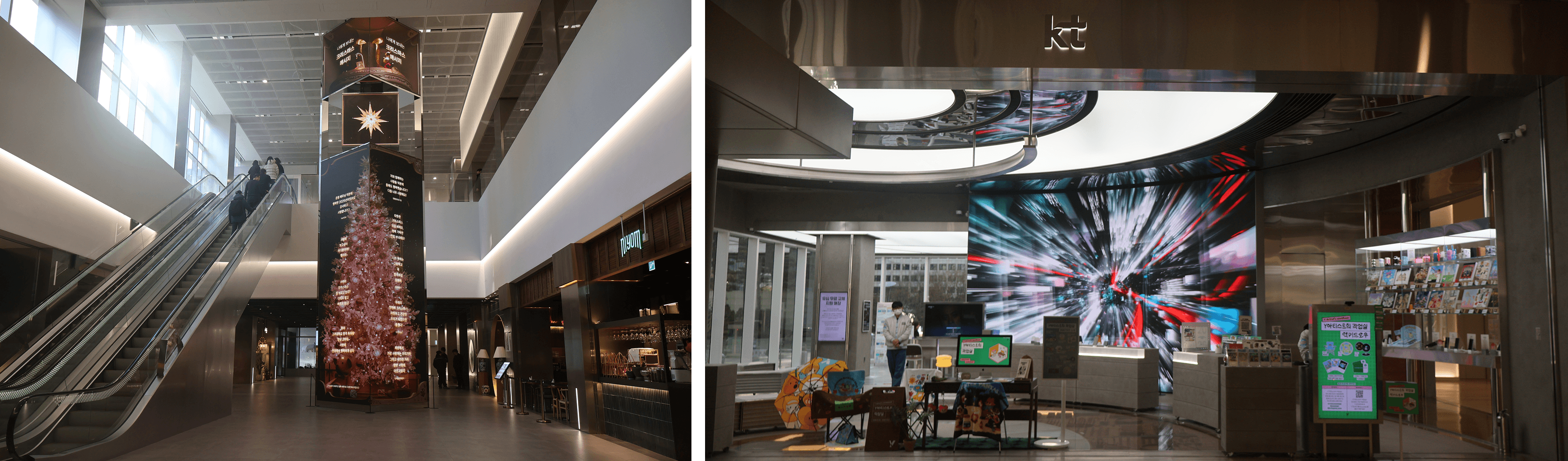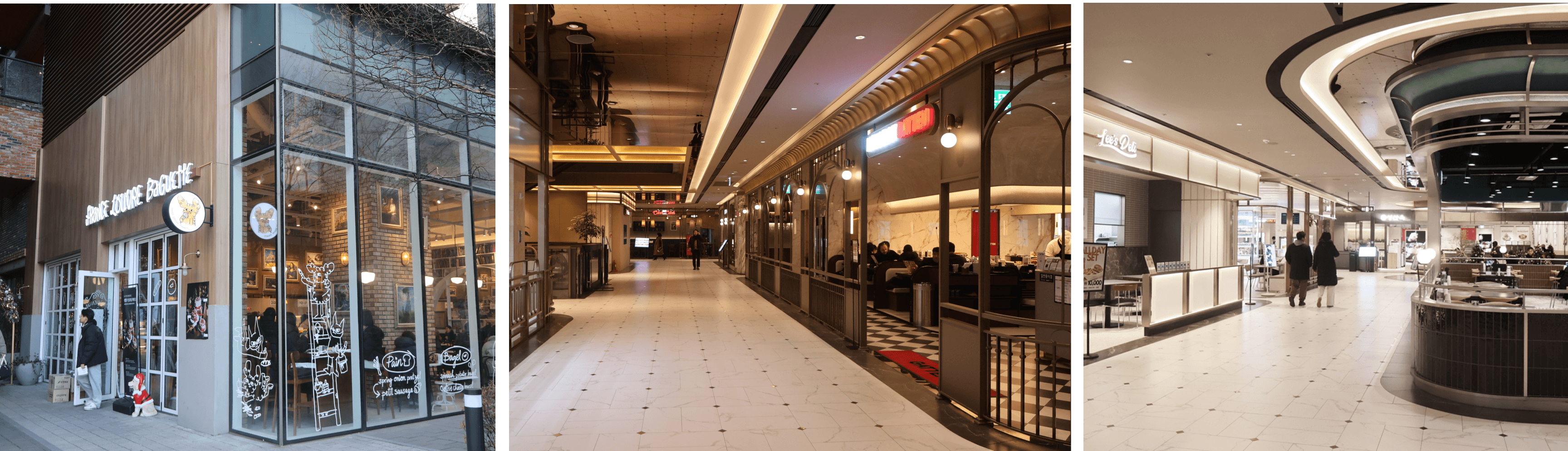 이미지 좌측부터 오른쪽, D타워 내부와 유니클로, 그리고 최근 오픈한 올리브베러