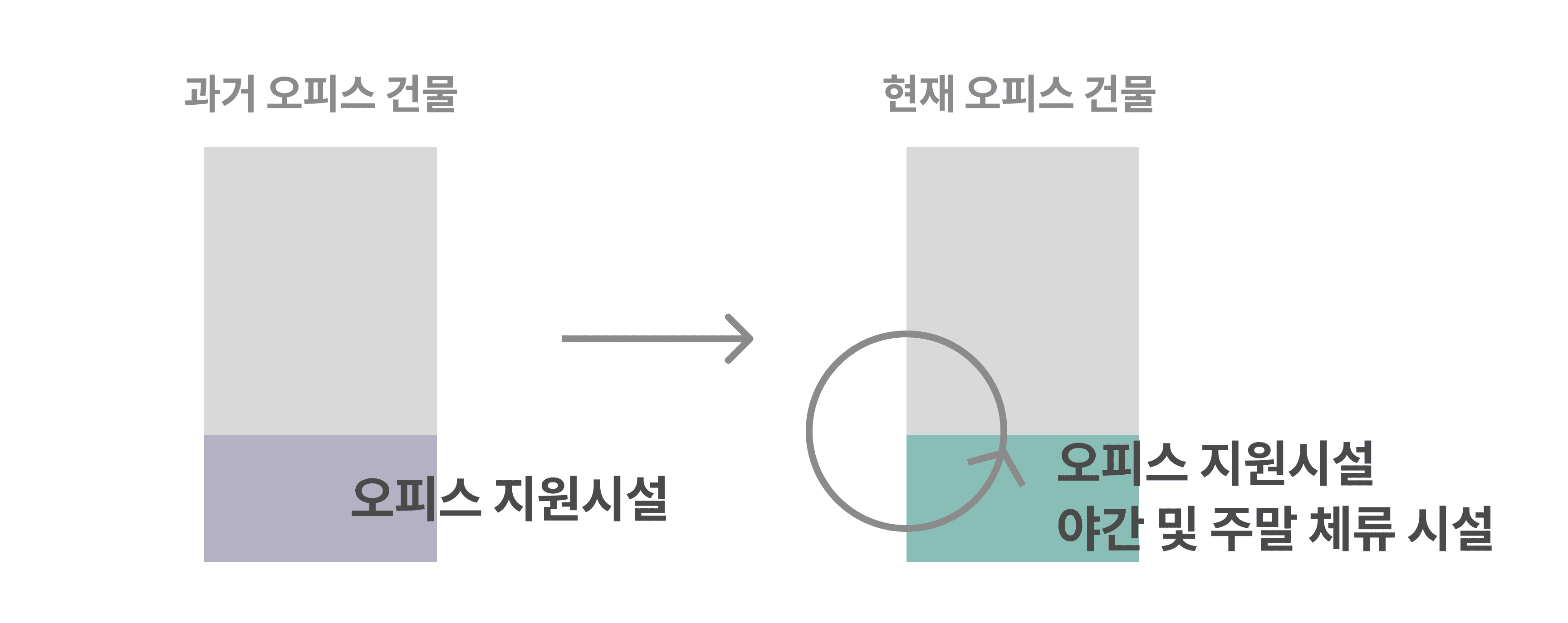 기존 오피스 리테일은 오피스 지원시설로만 역할을 해왔습니다.