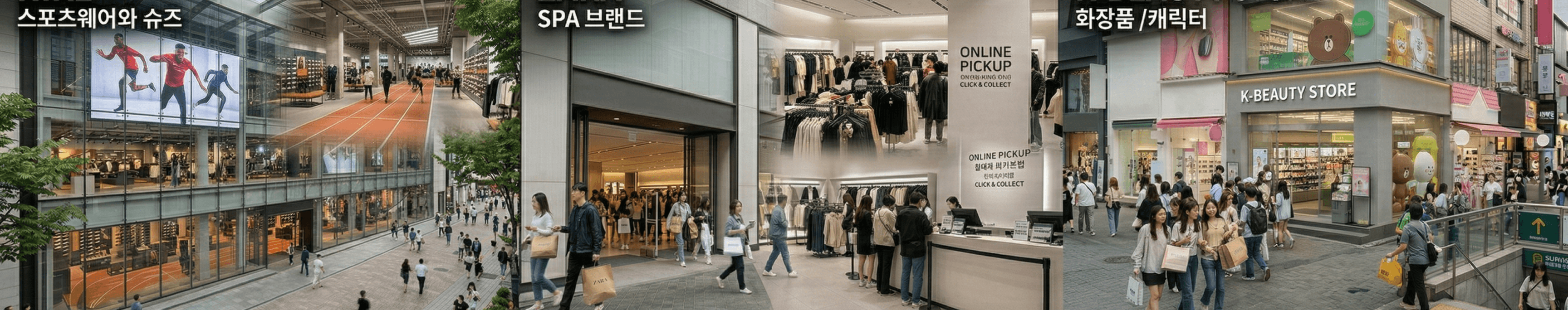 업종마다 플래그십 입지 기준이 다르다. 스포츠 브랜드는 파사드 노출, SPA는 비용 효율성, 일반 리테일은 브랜드 네이버링과 집객 시너지가 핵심이다.