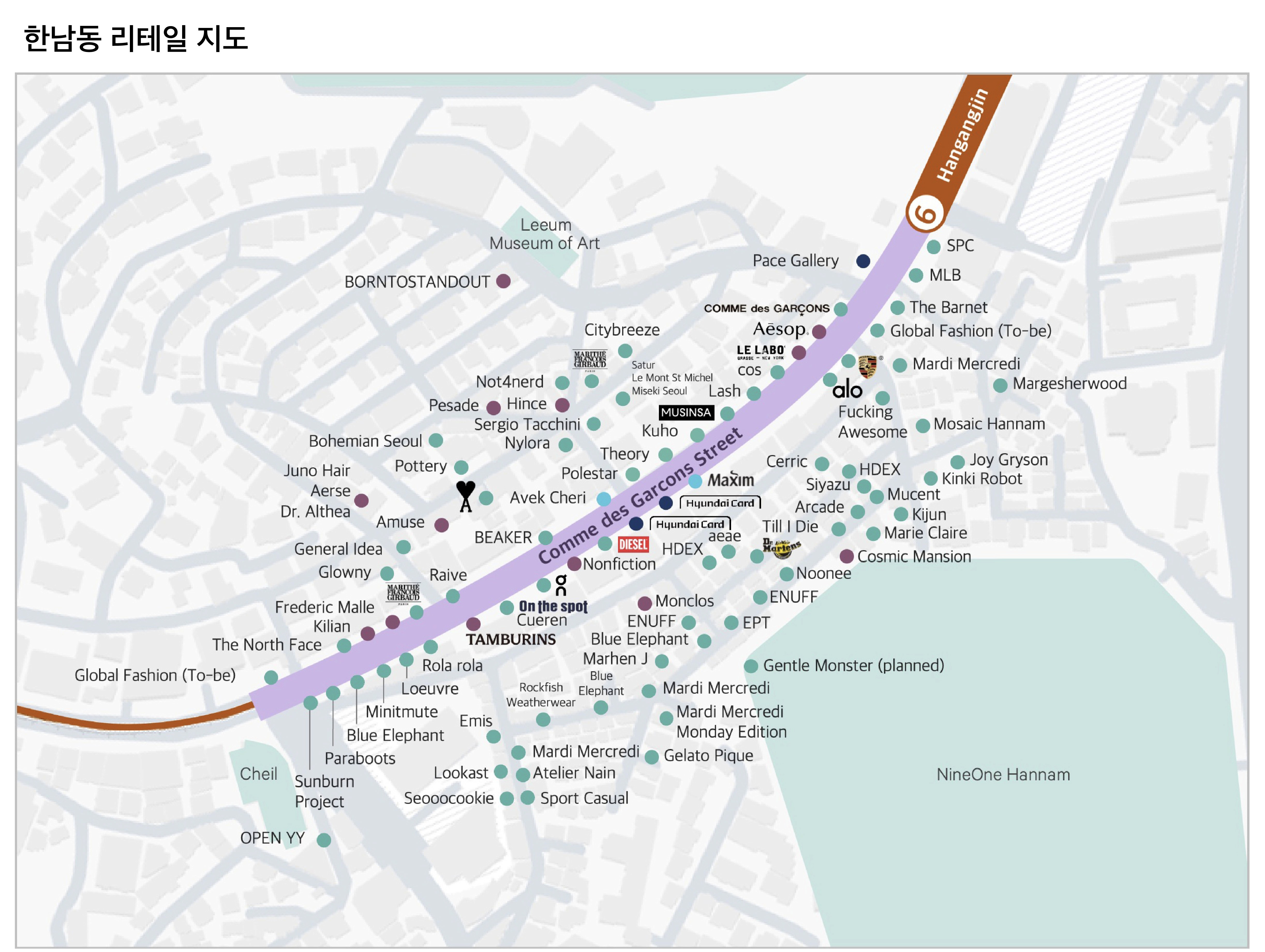 Hannam-dong’s position in Seoul is clear. It is neither a conventional tourist trap like Myeongdong nor a raw experimental space like Seongsu. Instead, it functions as a High-end Testbed and a Flagship Stage where global labels and top-tier domestic contemporary brands interpret and validate the "Seoul sensibility." How, then, is the spatial structure of Hannam-dong configured to deliver this "hip yet refined" atmosphere?